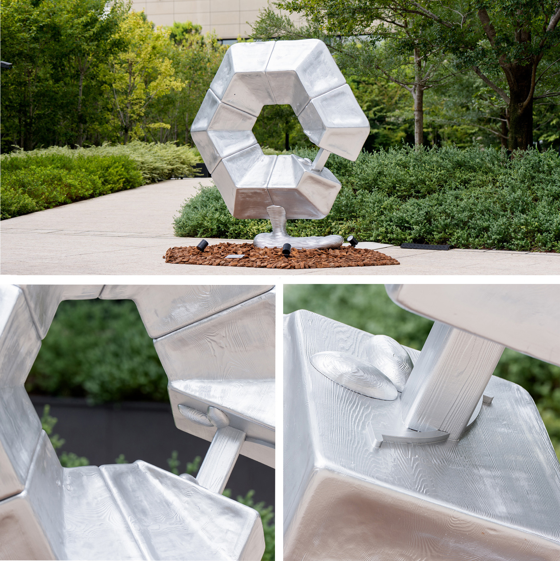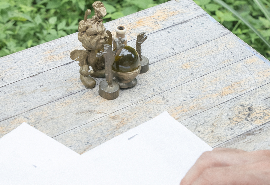 また、今回のインスタレーションでは、15〜35cmほどのブロンズ像を用いた作品群も登場します。芝生にキノコが環状に並んで生える「フェアリーリング」と呼ばれる不思議な自然現象から着想を得て、Otemachi One GARDENの芝生の上に3種類の作品が7体ずつ環状に並べられます。
